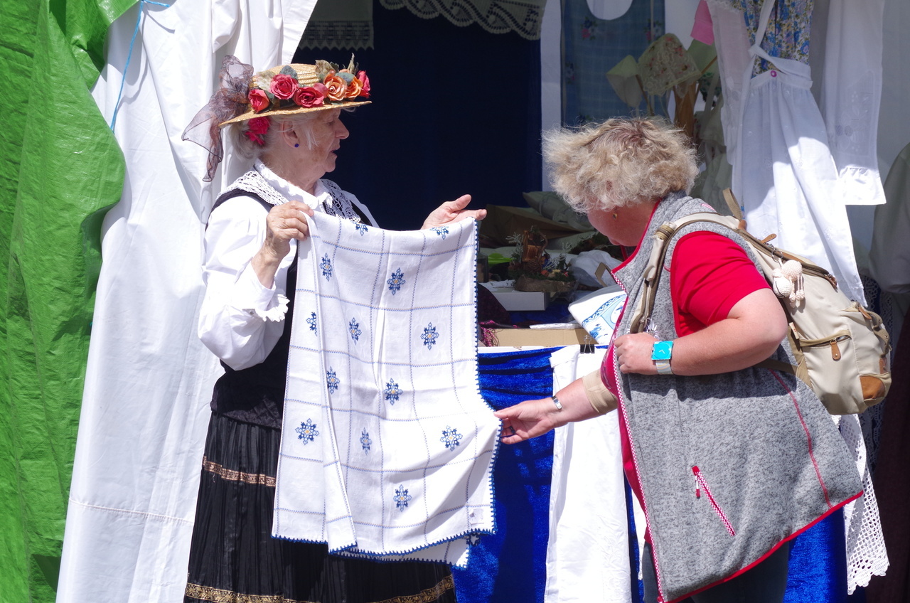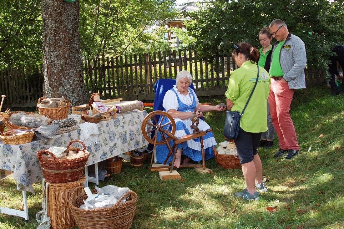 An beiden Tage zeigen Handwerkerinnen und Handwerker im Resenhof ihre Kunstfertigkeit beim Seile drehen, Klöppeln, Trachtenstickerei, Uhrenmalerei, Wollschuhe herstellen, Hobel machen und Spinnen.