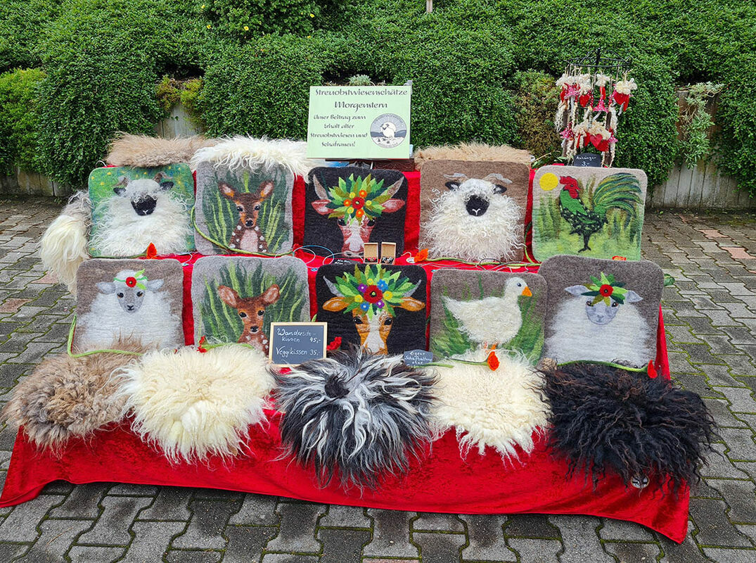 Wer wissen möchte, wie aus Rohwolle der feine Wollfaden wird, kann sich bei Urte Willmann aus Vöhrenbach mal im Handspinnen ausprobieren. Bei Petra Morgenstern von Streuobstwiesenschätze lässt sich Rohwolle kardieren. Ein Bernauer Korbflechter zeigt das Korbflechten und bringt auch Korbwaren zum Verkauf mit.